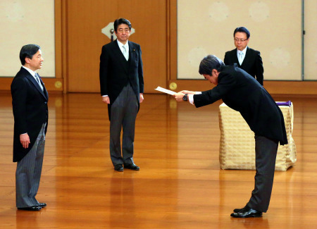 そんな中、1枚の写真が目に留まりました。「皇太子さまから認証を受ける石原伸晃経済再生担当相」の見出しがついておりました。天皇皇后両陛下、フィリピンをご訪問中の1月28日でしたから。