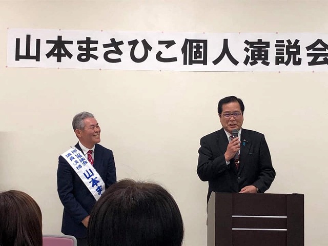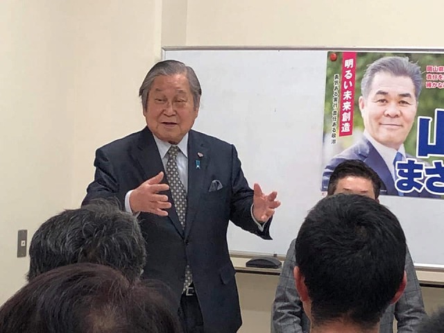 19時から、「鏡野町中央公民館」で開催された『山本まさひこ個人演説会』に、応援弁士として出席しました。山本まさひこ候補は、自由民主党公認・公明党推薦候補として、岡山県議会議員選挙に「津山市・苫田郡・勝田郡選挙区(定数4)」から2期目の再選を目指して立候補しています。志を同じくする同志として応援しています。頑張りましょう。