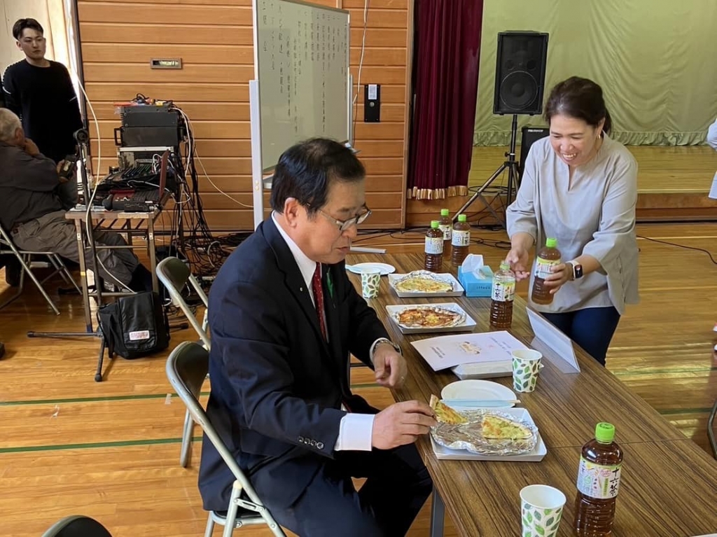 「上刑部地域敬老会・ふれあい祭り」に出席しました。ご開催おめでとうございます。敬老者の皆様、おめでとうございます。遅れて出席しましたが、ご挨拶の時間を作って頂きました。ありがとうございました。お手製のピザ、美味しかったです(*^▽^*)