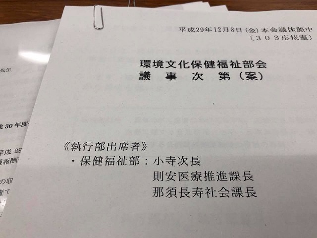 昼休憩時間に、自由民主党「環境文化保健福祉部会」を開会しました。環境文化保健福祉関係の陳情1件、意見書1件、平成30年度岡山県予算編成に関する各種団体からの陳情について、協議しました。