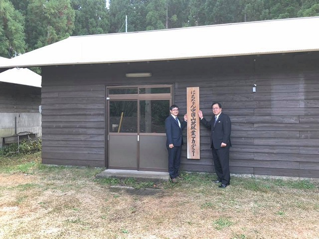 津山市から鳥取県日南町へ移動して、来年4月に開講する『にちなん中国山地林業アカデミー』の概要等について調査しました。日南町農林課林政アドバイザーの小菅氏(林業アカデミー担当・農学博士)にご対応いただきました。ありがとうございました。運営費に森林環境譲与税の充当も視野に入れておられました。やはりビジョンですね。