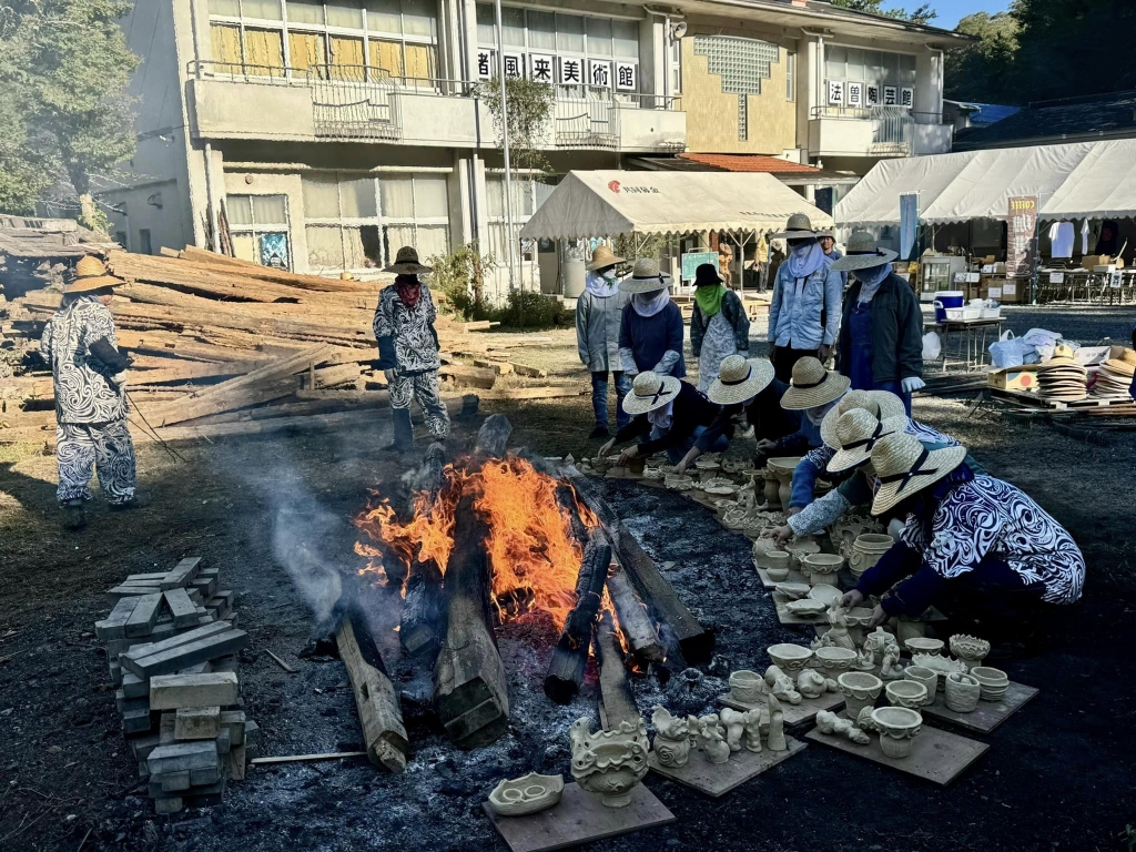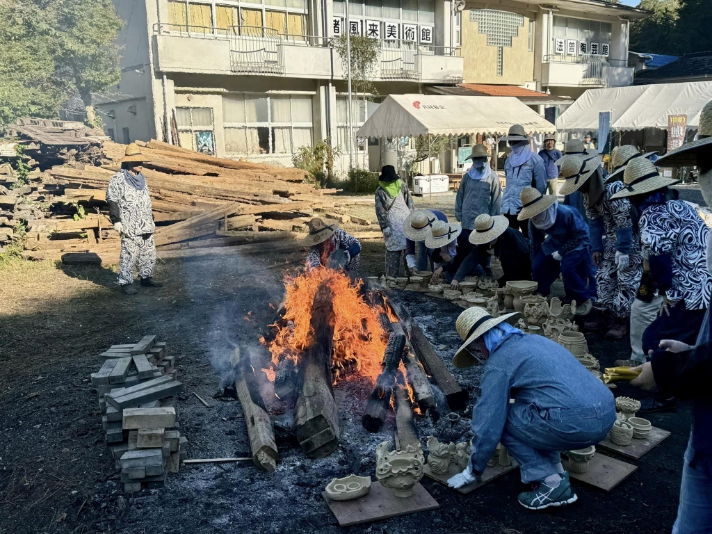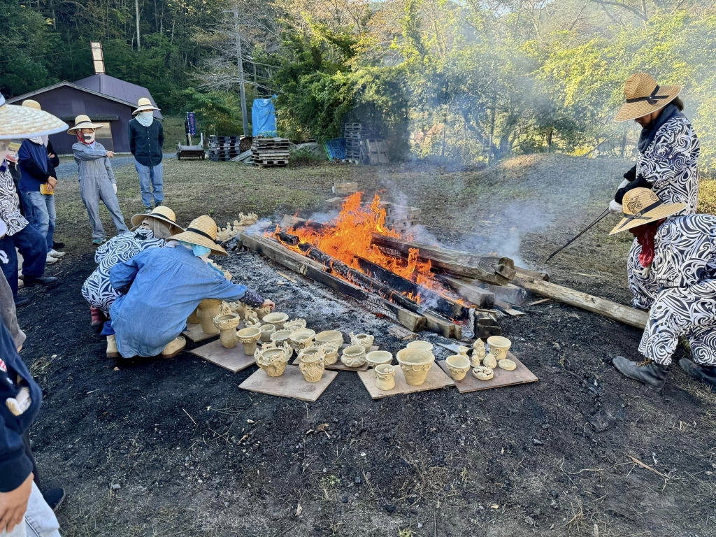 8時から、住まいする地域の「水路掃除」。それから急いで新見市法曽の「猪風来美術館前広場」へ移動。「秋の縄文焼き祭り」に出席しました。ご開催おめでとうございます。火が入りました。