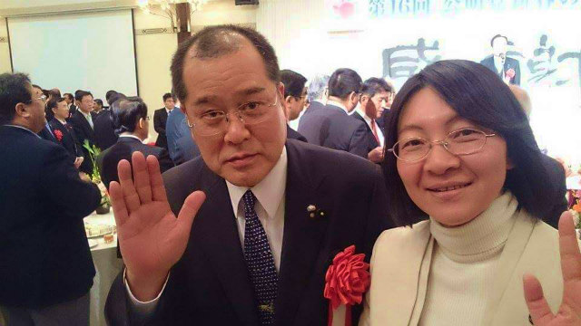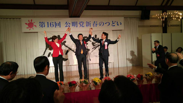 岩田新見市議会議員の奥様と。『第16回公明党新春のつどい』で。