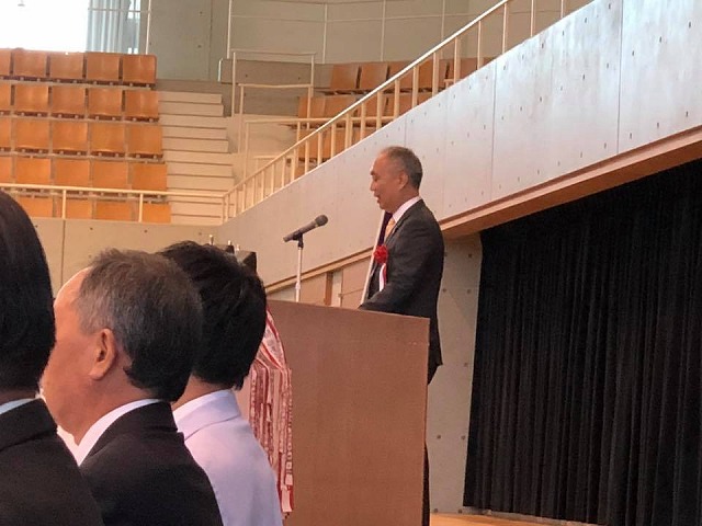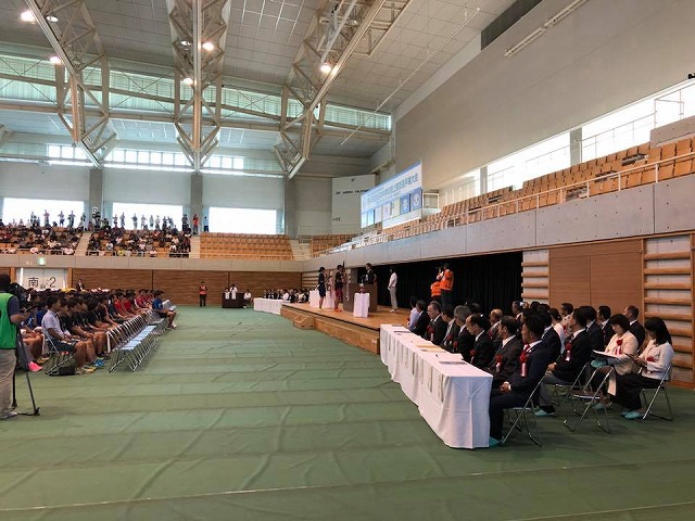14時30分から、「ジップアリーナ岡山」で開催された『平成30年度全国中学校体育大会 第45回全日本中学校陸上競技選手権大会 開会式』に出席しました。来賓はネクタイ、ジャケット着用と但し書きがあったのでその様にして出席しましたが、筆頭来賓の鈴木スポーツ庁長官はノーネクタイだったなぁ。
