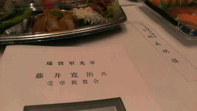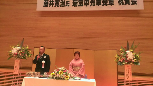 11時より、大佐総合センター大ホールで開催された『藤井寛治氏瑞宝単光章受章祝賀会』に出席しました。藤井氏は、昭和46年に消防団員となられて以来、一貫して地域消防活動に精励され、団員の資質向上、組織の活性化に尽力されました。地域のリーダーらしく立派な祝賀会でありました。ご挨拶の機会をいただきありがとうございました。