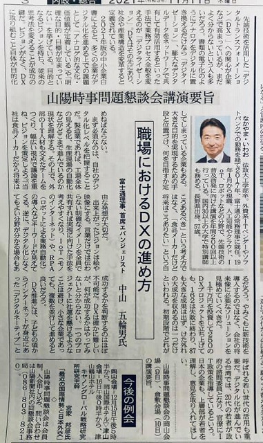 先日の「山陽時事問題懇談会」の講演要旨。山陽新から。