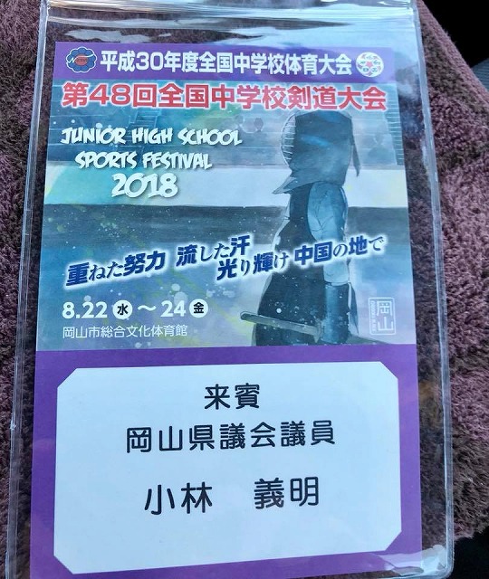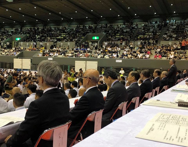 12時20分から、「岡山市総合文化体育館」で開催された『平成30年度全国中学校体育大会第48回全国中学校剣道大会開会式』に出席しました。頑張って!全国の精鋭たち。