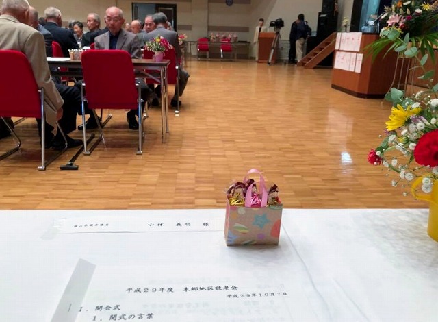 10時から「哲多総合センター」で開催された『平成29年度本郷地区敬老会』に出席しました。米寿のお祝いをお受けになった皆様、おめでとうございました。多くの元気な敬老者の皆様がご出席でした。婦人会の皆様のお世話であります。ありがとうございます。