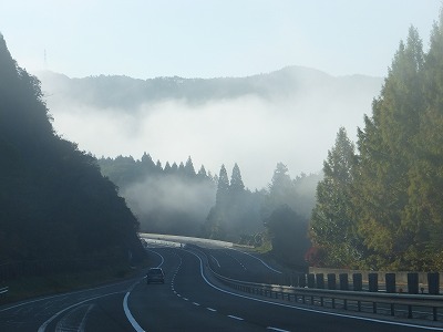今朝の岡山道は『霧太郎』が美しかった。写真でどうぞ。