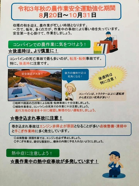 「令和3年秋の農作業安全運動」展開中です。急がば回れです。