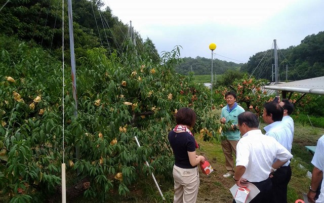 13時から赤磐市の「桃茂実観光農園」を訪問して、超党派で組織する『「くだもり王国おかやま」推進県議会議員連盟』による『桃の品種・生育状況の調査』に参加しました。暑かったです。