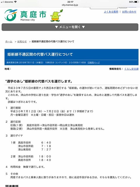 新見駅につながる伯備線、芸備線、姫新線は、運転再開まで1ヶ月以上かかると発表があった。お隣の真庭市では、市独自で通学生限定の代替バス運行を決めたと聞いた。緊急時には決断が必要だ。頑張れ新見市!地域の子供たちの為に。