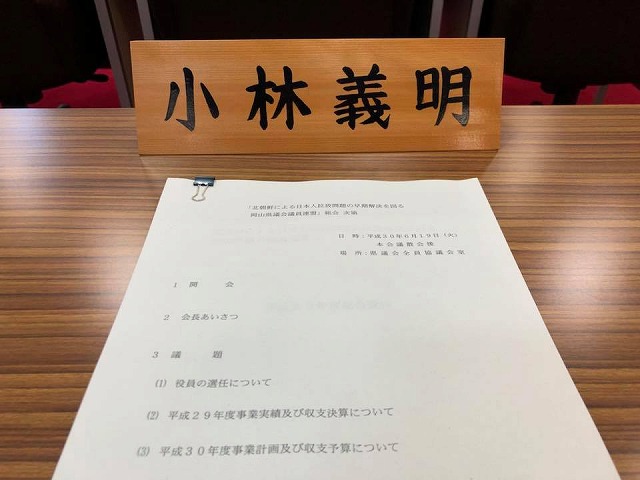 『北朝鮮による日本人拉致問題の早期解決を図る岡山県議会議員連盟総会』