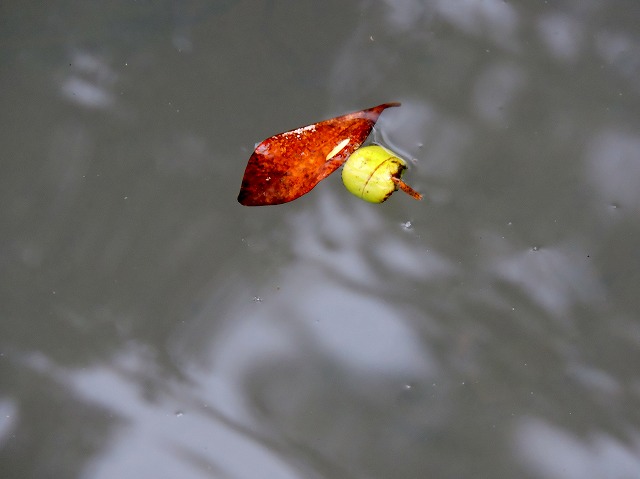 池の落ち葉。