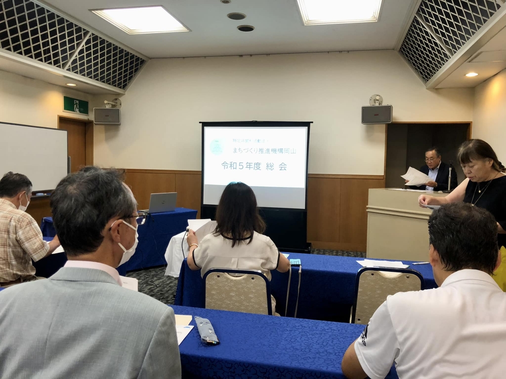 18時から、岡山市内のホテルで開催された「特定非営利活動法人まちづくり推進機構岡山令和5年度総会」に出席しました。