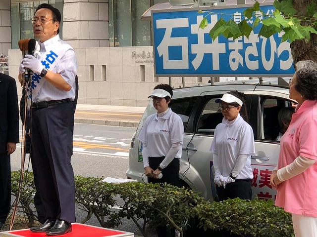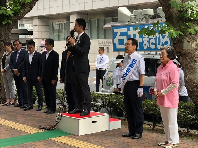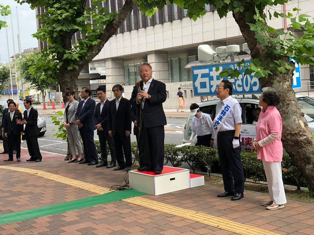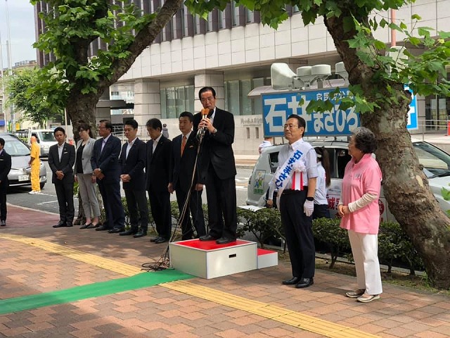 参議院議員選挙が公示されました。17日間、頑張って参ります。岡山県庁前です。石井まさひろ候補の出陣式。