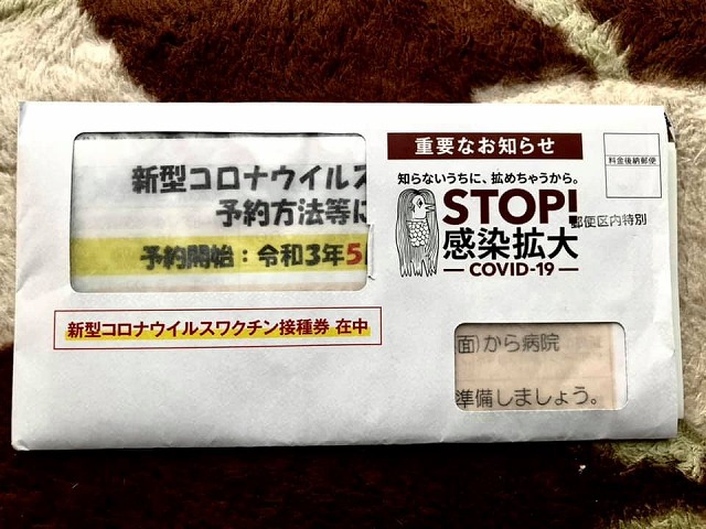 新型コロナウイルスワクチン接種券が届きました。予約なしの接種は出来ないこと、予約開始は5月10日㈪からであること、ワクチン接種は5月17日㈪以降に始まることなどが記されていました。