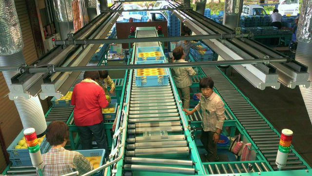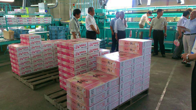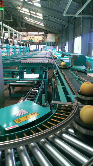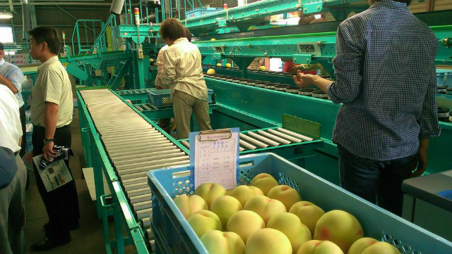 続いて、総社市の「JA岡山西山手中央選果場」で非破壊糖度センサー付き桃選果物施設の概要をお聞きしました。