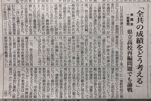 さて、昨日の小林義明の一般質問ですが、地元紙が記事にしてくださっています。「備北民報」と「山陽新聞」です。ありがとうございます。