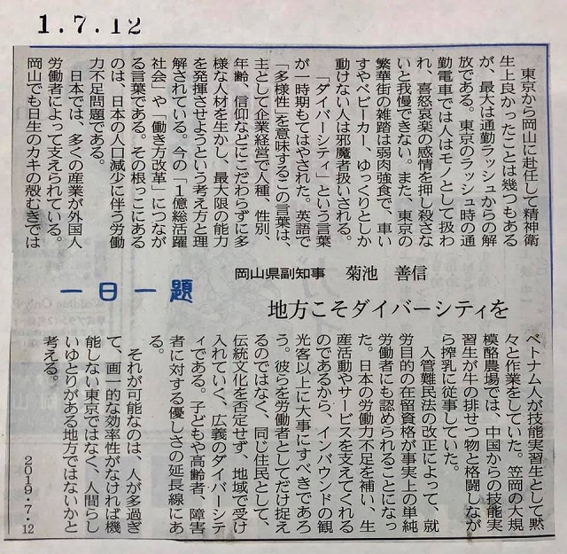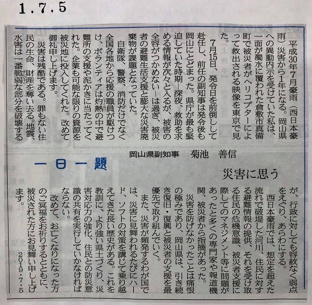 県議会棟に入りました。蝉の声がにぎやかですね。9時から「委員長レク」、10時から、県議会「農林水産委員会」を開会します。記事は、山陽新聞夕刊です。