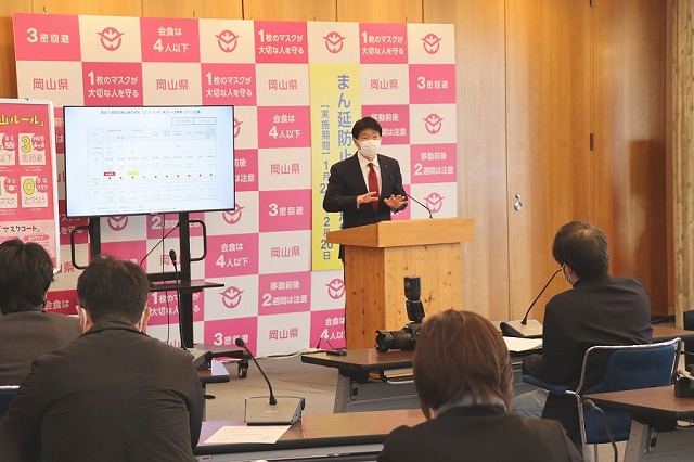 伊原木岡山県知事は、本日9時30分から臨時記者会見を開き、新型コロナウイルス対応の「まん延防止等重点措置」の延期を政府に要請することを表明しました。2月20日から2~3週間を想定しているとのことです。