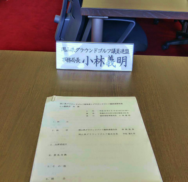13時から『岡山県グラウンドゴルフ協会役員と岡山県グラウンドゴルフ議員連盟役員との懇親会』に出席しました。同議員連盟の事務局長として、司会進行を務めさせていただきました。