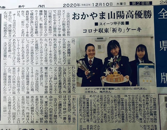 おめでとうございます。校長先生もお喜びだろう。山陽新聞です。