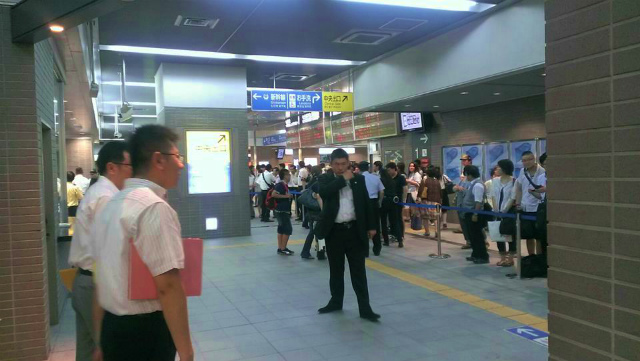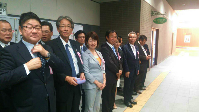 県議会棟から全日空ホテルに集合して、諸注意を伺った後、岡山駅へ到着したところです。お見送り約20分前です。華やいだ雰囲気があります。