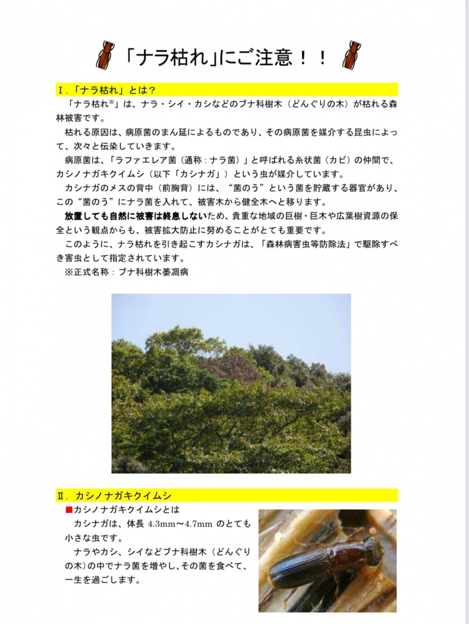 新見市内の山で、「ナラ枯れ被害が拡大している」と連絡を頂いた。県担当部局へ情報提供したのが先週末。早速今日、現地視察調査をして頂いたと聞いた。