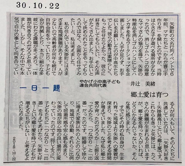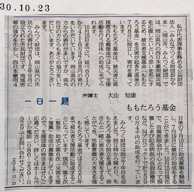 山陽新聞夕刊です。お友達2人の連載、楽しみに読んでいます。