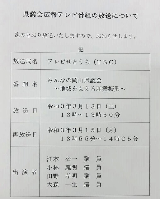 今日の放送を見逃してしまった(汗)出演していても、どんな映像が流れるのか試写していないので分からない。再放送は見逃さないようにしなくては。3月15日(月)の13時55分から。