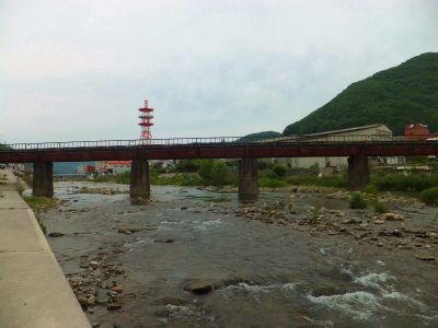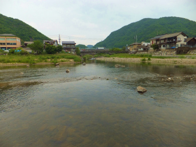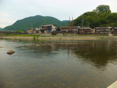 熊谷川と高梁川の合流・・・右奥の小山が『城山』です。