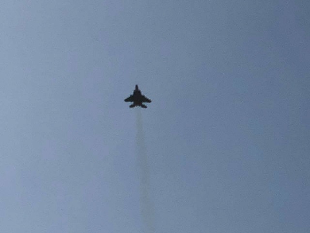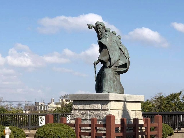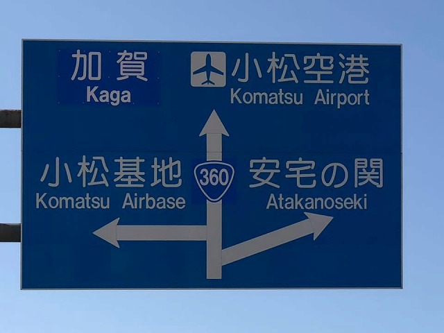 続いて、北陸自動車道で石川県小松市へ移動して昼食。そのお店の近くで、ご存じ「安宅の関」のモニュメントを発見。空には小松基地を飛び立った戦闘機。