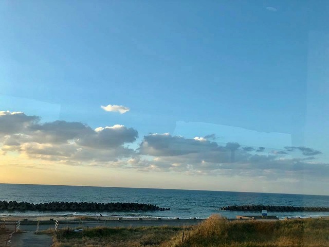 今日は正真正銘の日本海であります。夕日が沈んで行くなあ。北陸自動車道の車窓からの眺めであります。