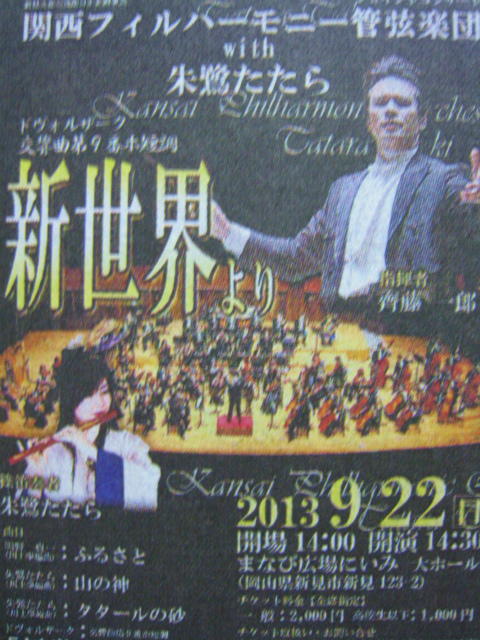新見市在住の「しの笛」演奏者朱鷺たたらさんと、「関西フィルハーモニー管弦楽団」が、9月22日、「まなび広場にいみ」で開かれるコンサートで共演する。お問い合わせは、新見市教育委員会生涯学習課0867-72-6108