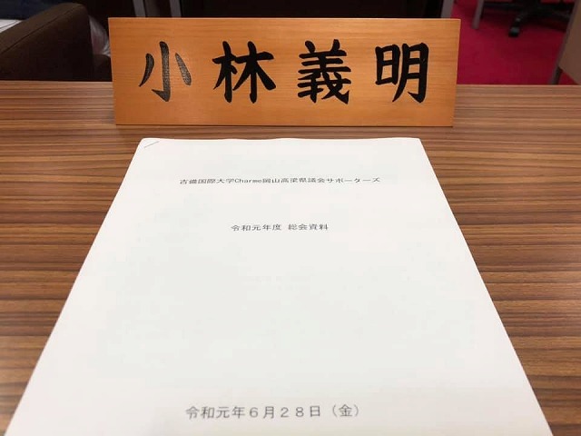 続いて、『吉備国際大学Charme岡山高梁県議会サポーターズ(小野泰弘会長)総会』が開催されました。私は他の委員長行事の為、退席させて頂きました。
