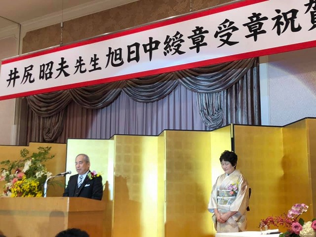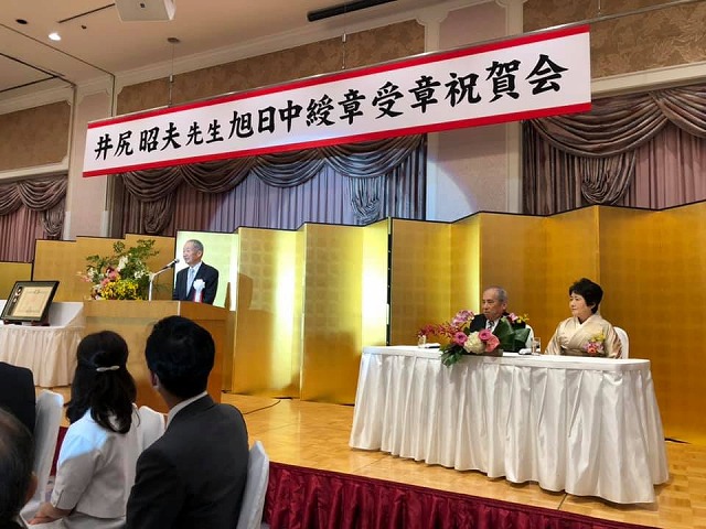 岡山市内のホテルで開催された『井尻昭夫旭日中綬章受章祝賀会』に出席しました。県下の教育、政治、経済界の名士がご出席でした。井尻先生は岡山私学の大先輩であり、先代からお世話になっております。誠におめでたいことでありました。