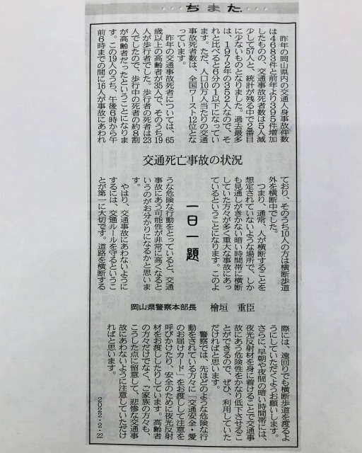 県議会棟に入りました。今日から「2月定例岡山県議会」一般質問です。記事は、山陽新聞「ちまた」欄です。