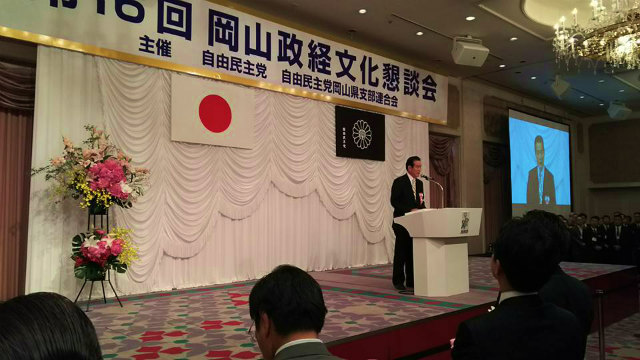 14時から、岡山市内のホテルで開催された『第16回岡山政経文化懇談会』に出席しました。新見市からも多くの皆様にご出席をいただきました。ありがとうございました。感謝申し上げます。