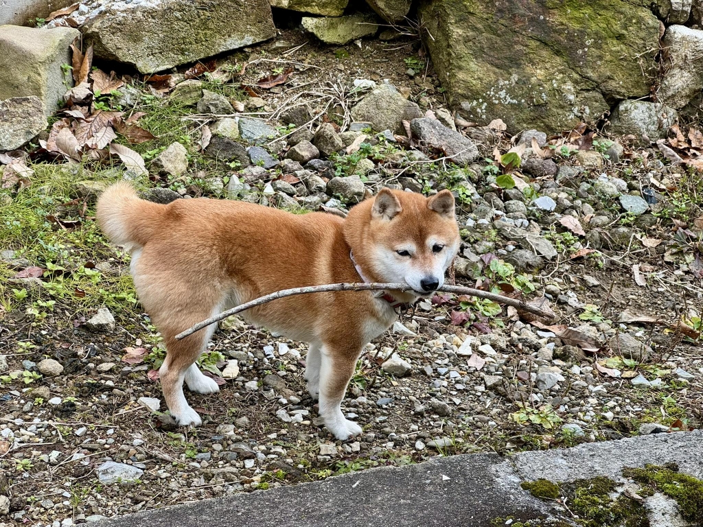 今日、「近頃、ふくちゃんは、小枝をくわえて帰らなくなりましたか?」と質問された。「いえいえ、写真を撮らなくなっただけで、よくくわえて帰ってます。」とお答えしました。はい、証拠写真(笑)