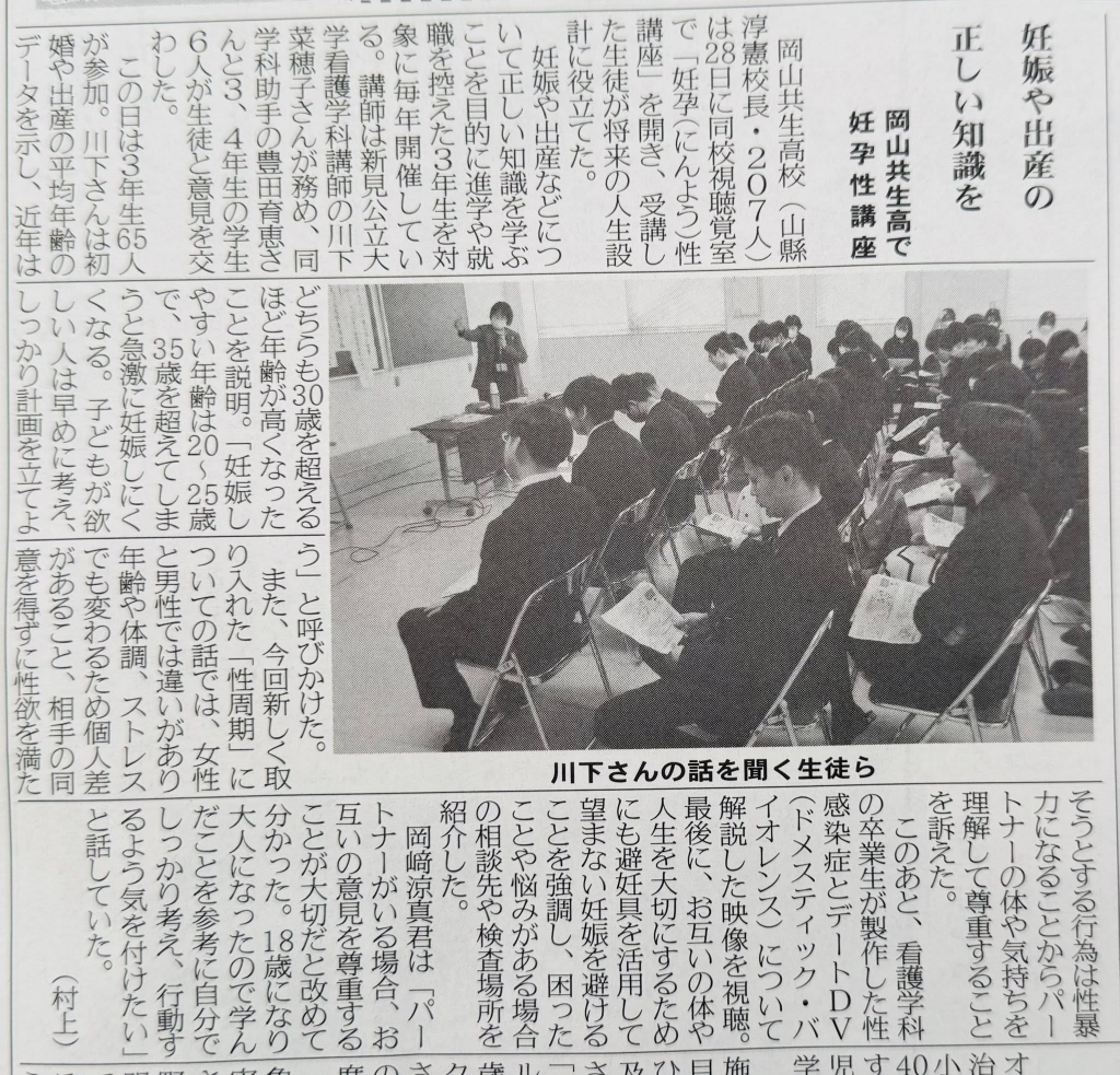 地域紙「備北民報」に掲載された岡山共生高校のニュース。