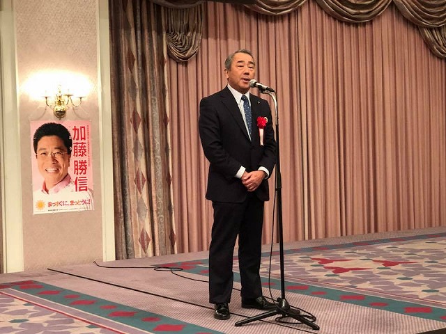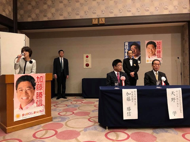 11時から、岡山市内のホテルで開催された『加藤勝信「明日の日本を語る会」』に出席しました。県議会議員として、岡山県私学協会としての出席であります。ご盛会おめでとうございました。今後益々の加藤勝信厚生労働大臣のご活躍を期待しております。