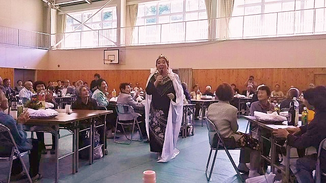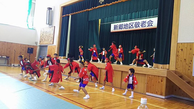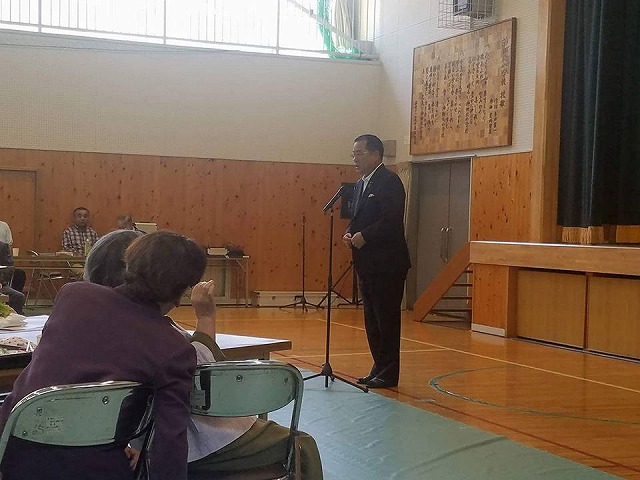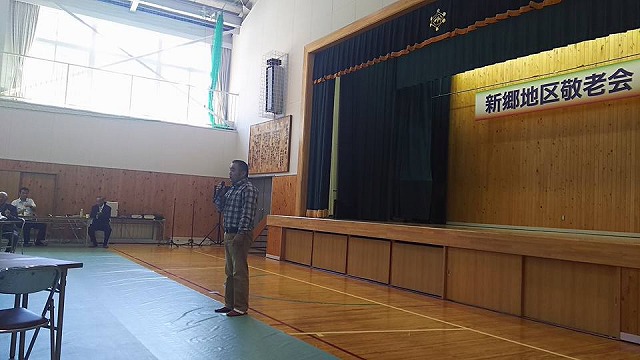 続いて、 「神郷北小学校体育館」で開催された『平成29年度新郷地区敬老会』に出席しました。遅れての出席でしたが、わざわざご挨拶の機会を作って頂きました。ありがとうございました。新郷地区の48名の敬老者の皆様がご出席でした。「