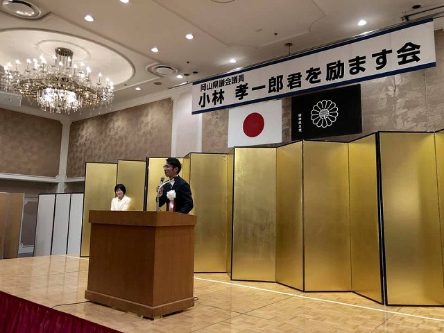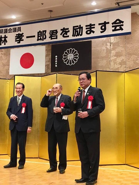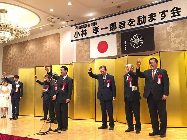 12時から、岡山市内のホテルで開催された『小林孝一郎君を励ます会』に出席しました。ご盛会おめでとうございました。小林孝一郎県議は同期でありますし、政友会の同志でもあります。頑張りましょう。