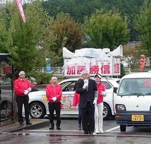 本日の「加藤勝信選挙カー」同行の小林義明の写真を、何枚か撮っていただきました。ありがとうございました。