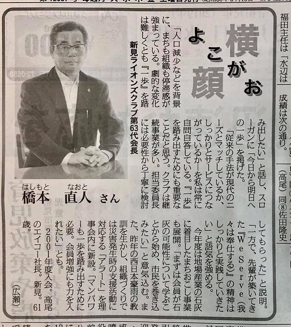 新見ライオンズクラブ第63代会長ご就任、おめでとうございます。