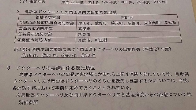 なお、鳥取県は「ドクタカー」を持っているとのことでありましたので、詳細について資料を取り寄せたいと思っています。