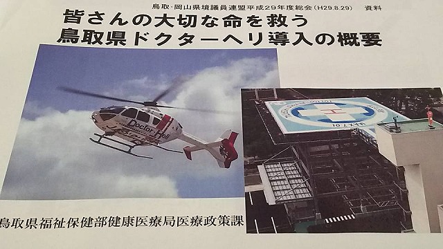 本日の「鳥取・岡山県境議員連盟」の意見交換会で、「ドクターヘリの運用」がテーマの一つとなりました。