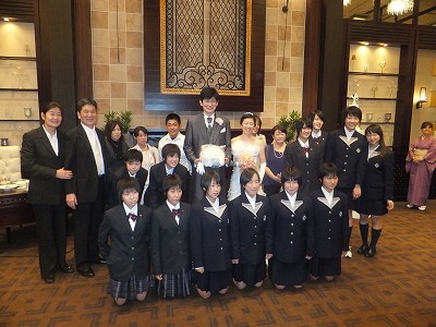 高校の先生が新郎です。バレー部の顧問ですので、部員たち