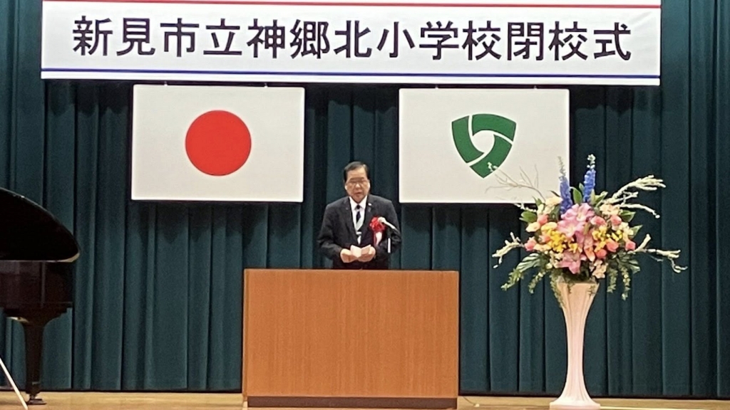 9時30分から、『新見市立神郷北小学校(児童数12人)閉校式』に出席しました。多くの地域の皆様がご出席でした。ありがとう神郷北小学校!
